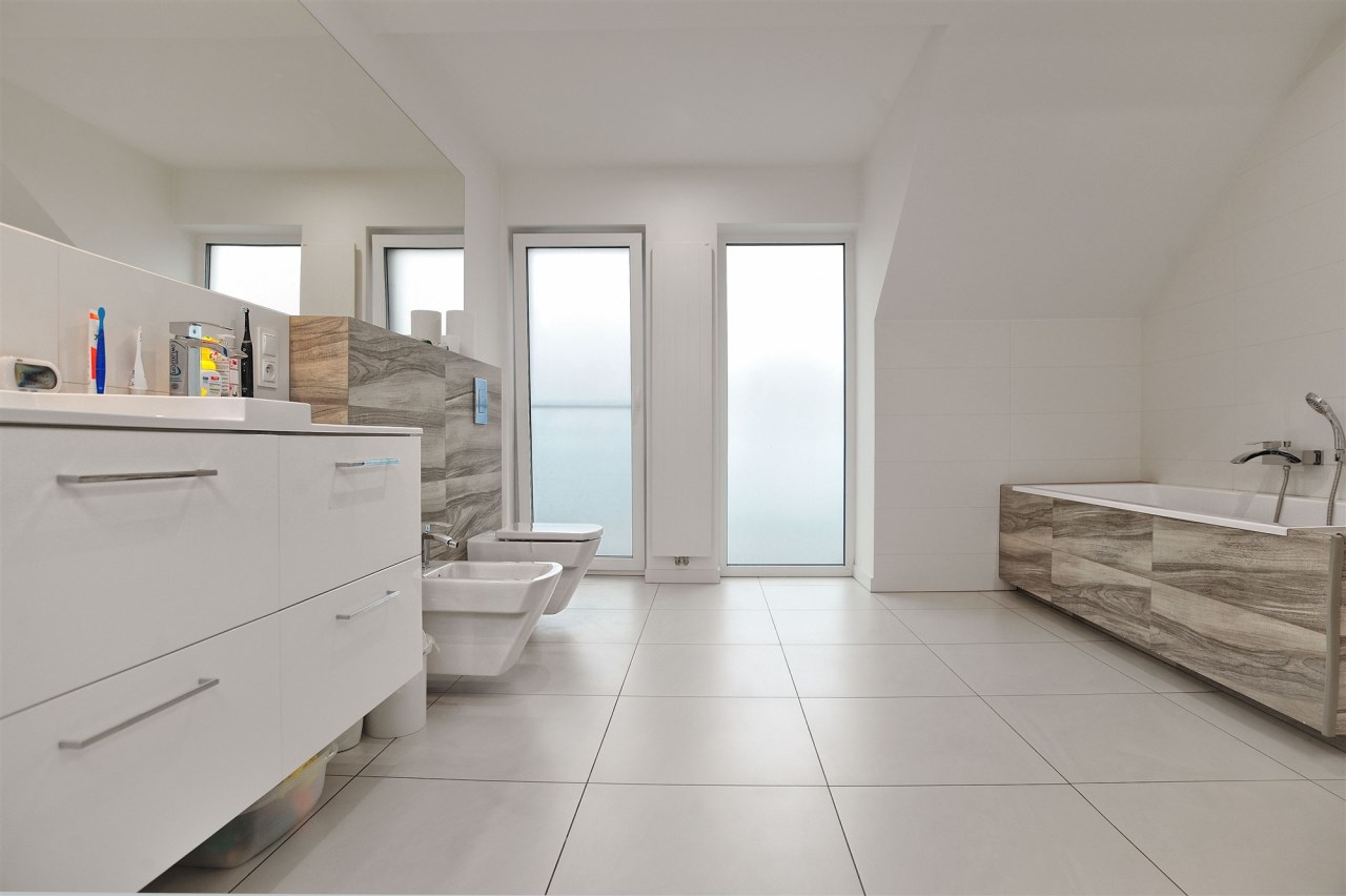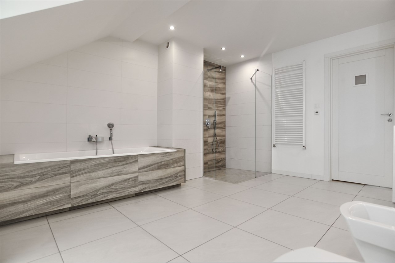 Piętro: trzy komfortowe sypialnie (jedna z garderobą), elegancka łazienka z wanną, prysznicem, bidetem i podwójną umywalką, wyjście na balkon z łazienki i sypialni.