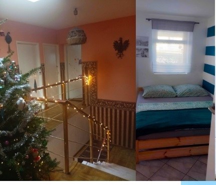 Dom wolnostojący 2-poziomowy z 1982r usytuowany na działkach o pow.462m2 z możliwością rozbudowy o następny poziom z poddaszem użytkowym włącznie . Na parterze 2 pokoje samodzielne świeżo po remoncie , po ok. 20m2 z łazienką i wc ( jeden z bezpośrednim wyjściem do ogródka ) oraz łazienka z wc . Na piętrze 5 pokoi ( jeden duży ok.25m2 , dwa następne po ok. 18m2 - 4- osobowe ) oraz 2 pokoje mniejsze 2-3 osobowe w większości z balkonem i łazienką z wc. W budynku znajdują się 2 pomieszczenia warsztatowe po ok. 12m2 każdy - z możliwoscią wykorzystania na pokoje gościnne , część podpiwniczona .Ogrzewanie centralne - kocioł ; węgiel ,drewno z możliwością przejścia na gaz, na dachu panele słoneczne 2.5kv co daje ok. 8 miesięcy podgrzewania wody za darmo. Standard średni