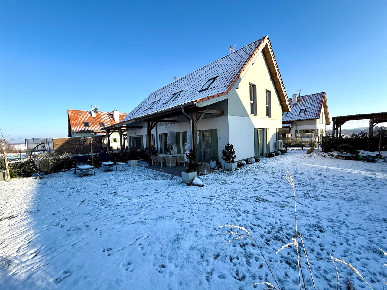 Oferta sprzedaży nowoczesnego domu w zabudowie bliźniaczej położonego w okolicy Szczecina 14km (miejscowość Smolęcin) – wysoki standard rok budowy 2024r. Nowe zorganizowane osiedle - drogi polbrukowe, infrastruktura.
