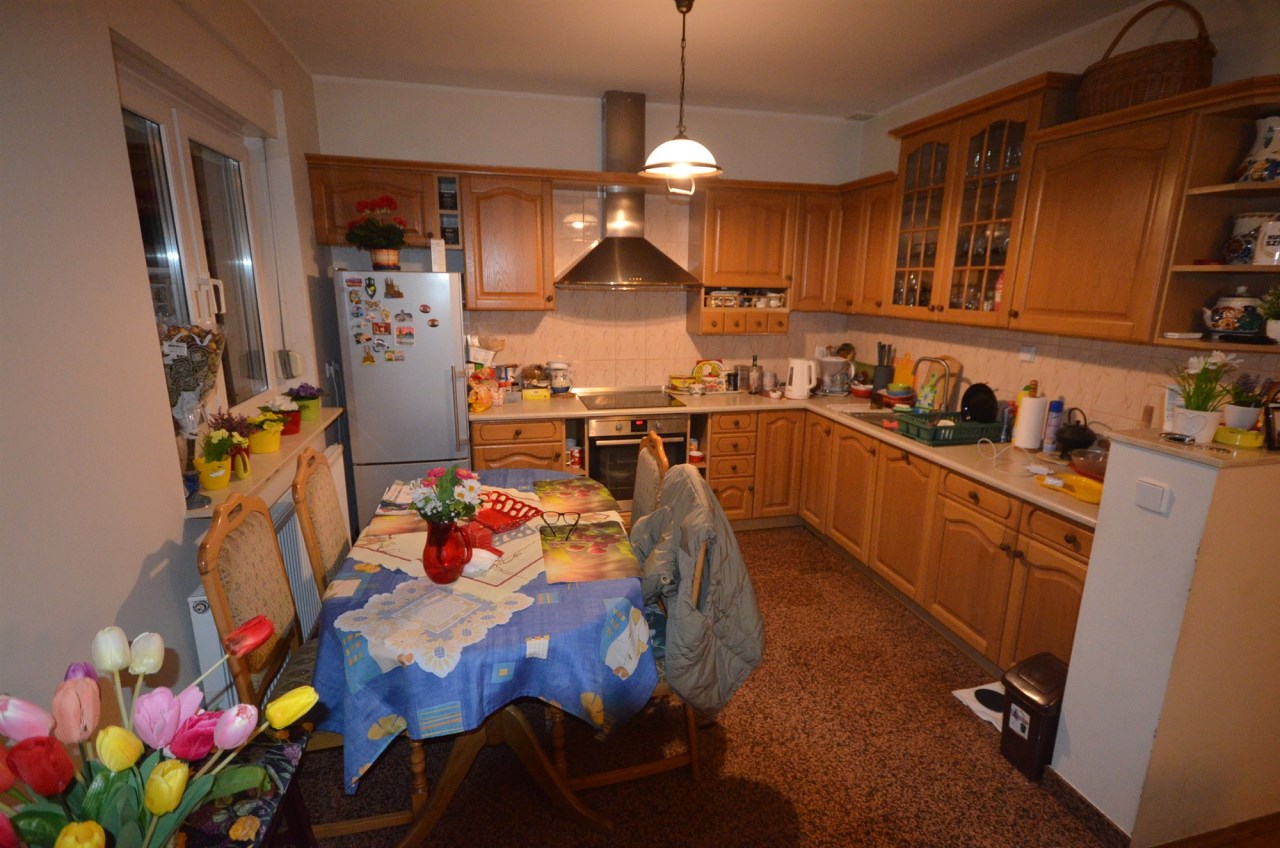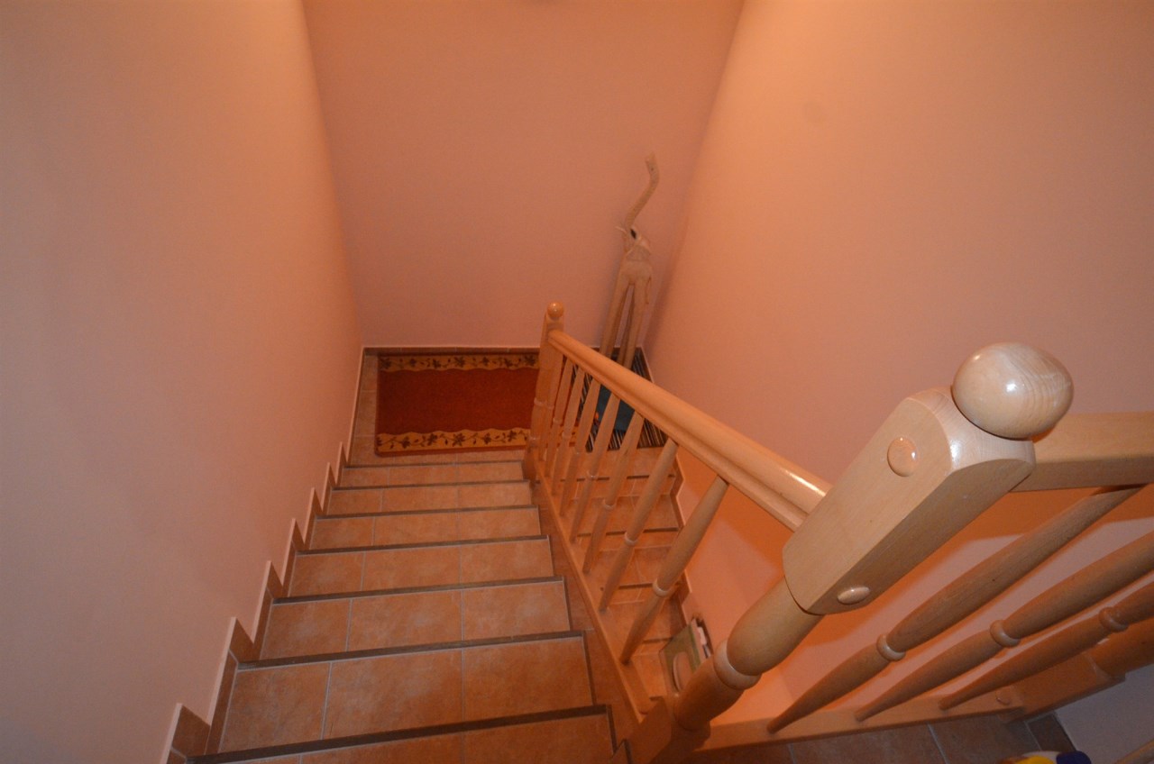 Na pierwszym piętrze znajdują się 3 pokoje, łazienka z wc i wanną. Na poddasze prowadzą również drewniane schody i jest tam zagospodarowany pokój, łazienka z wc oraz duży otwarty pokój z widokiem na ogród. Nieruchomość w pełni umeblowana w standardzie powyżej średniej, po remoncie 3 lata temu