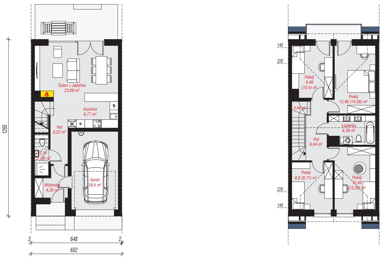 | Powierzchnia pokoi | 23,09; 10,40; 14,36; 13,35; 9,71 m2 |