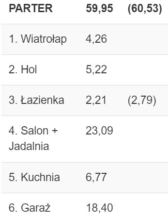 | Powierzchnia przedpokoi | 4,26; 5,22; 6,04 m2 |