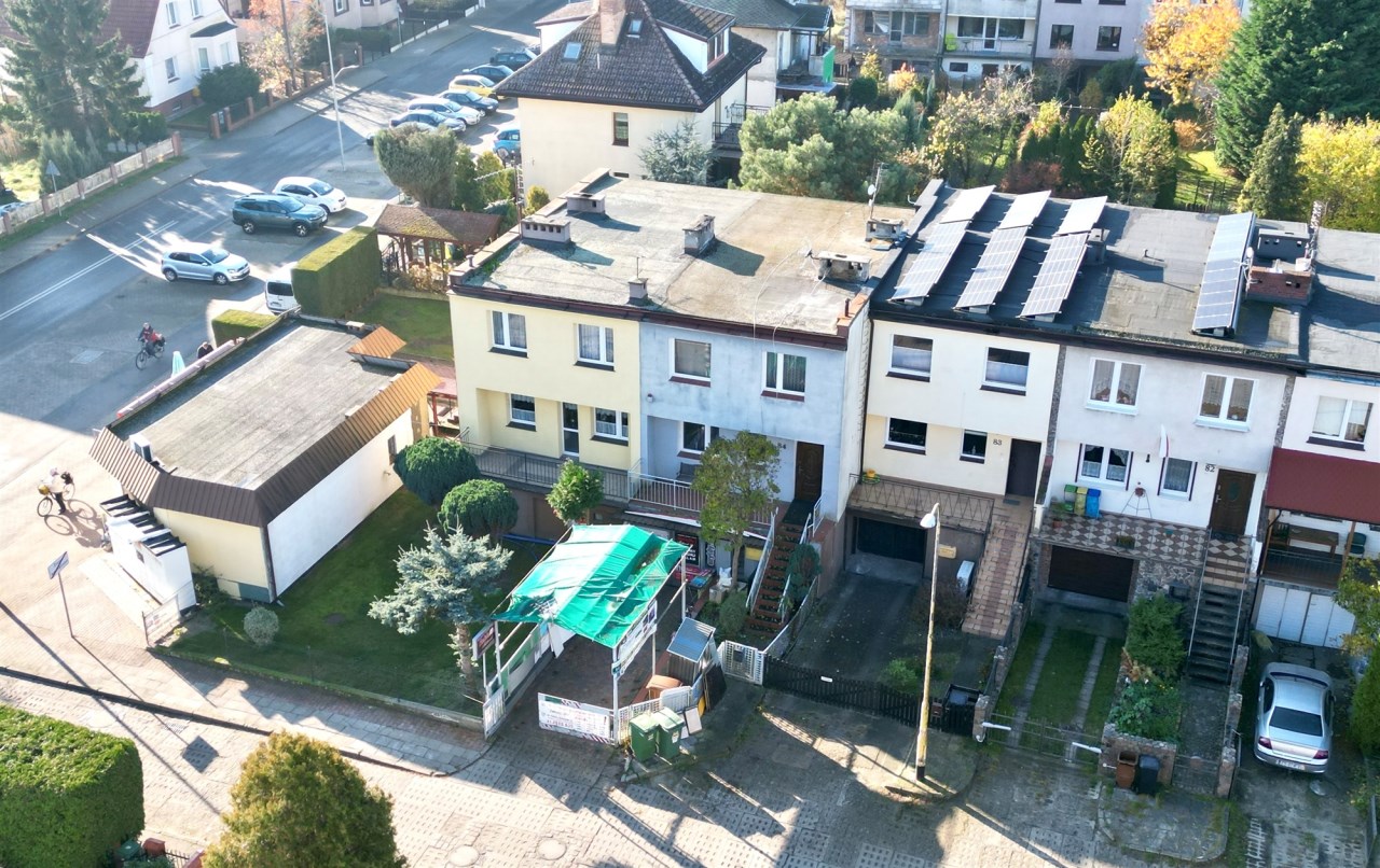 Na sprzedaż funkcjonalny dom w zabudowie szeregowej o powierzchni całkowitej ok. 160m2, użytkowej mieszkalnej ok. 110 m² + przyziemie dostosowane do prowadzenia działalności gospodarczej ok. 50m2, położony w spokojnej i dobrze skomunikowanej części Szczecina – Dąbia.