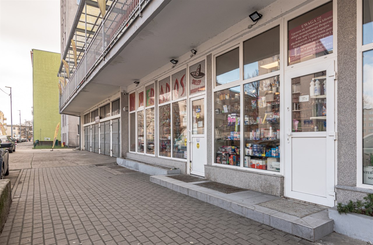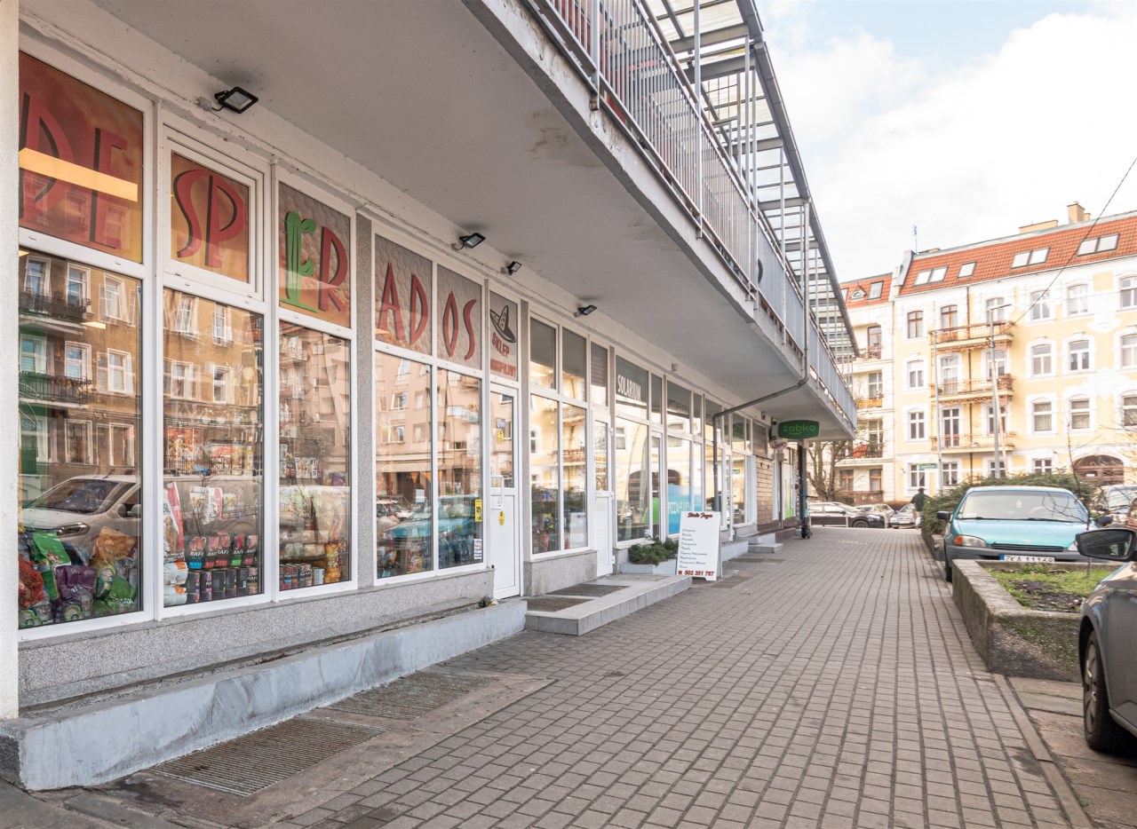 Do sprzedaży duży lokal użytkowy, dwupoziomowy (parter z witryną oraz pomieszczenia piwniczne) położony przy ul. Księcia Barnima III Wielkiego.