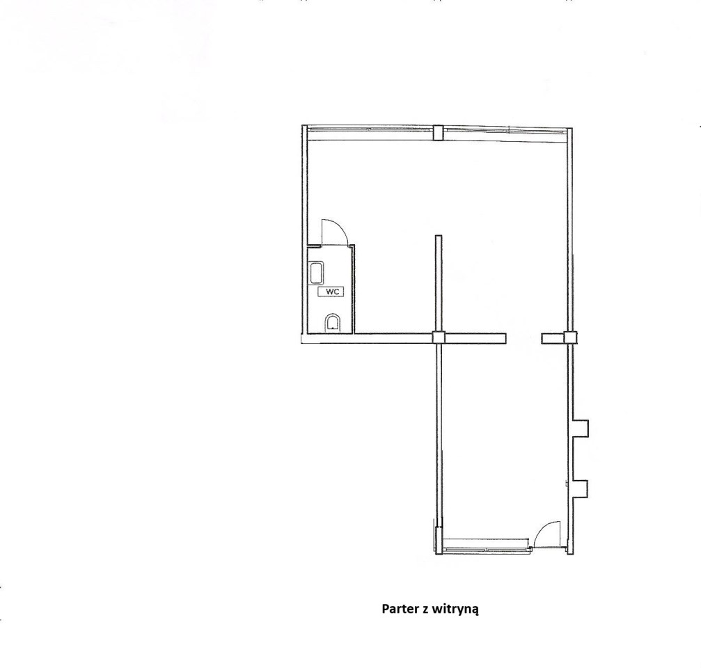 Lokal położony jest w budynku handlowo-usługowym, posiada jedno wejście od frontu. Lokal składa się z trzech pomieszczeń: sali głównej z witryną, magazynu oraz wc.