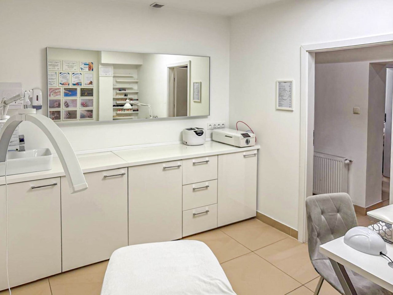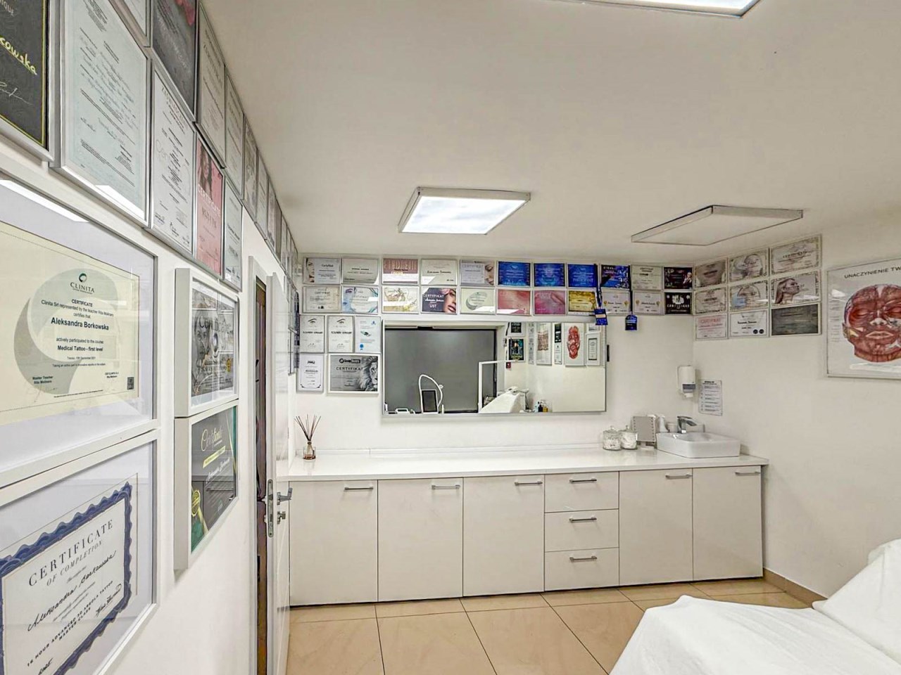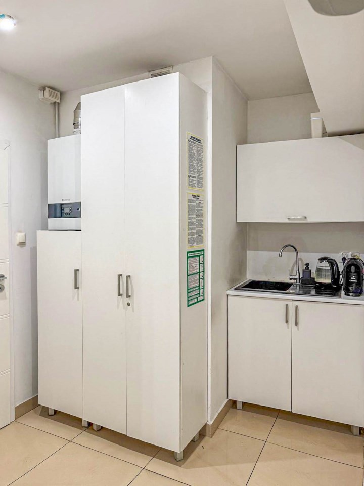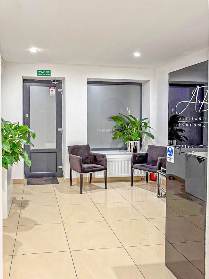Lokal składa się z recepcji, dwóch gabinetów do których doprowadzona jest woda i kanalizacja, zaplecza socjalnego oraz łazienki. Lokal w bardzo dobrym standardzie, po remoncie generalnym sprzed kilku lat. Na podłodze terakota, ściany gładzone, malowane, nowa stolarka drzwiowa wewnętrzna, nowe witryny, nowe instalacje: wodno-kanalizacyjna, grzewcza i elektryczna.