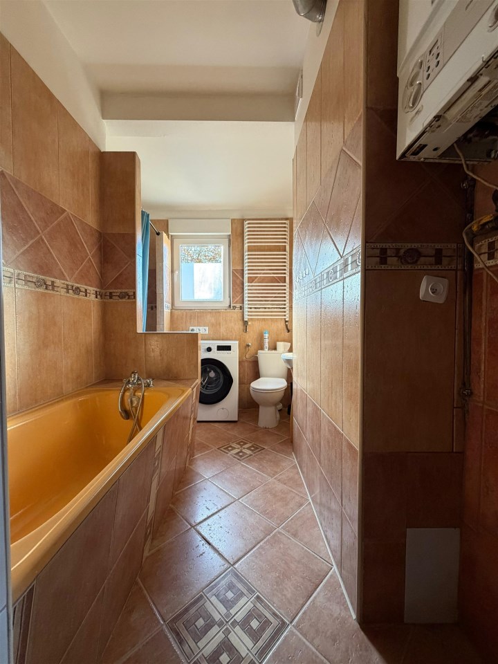 - łazienka z wanną i prysznicem i oknem