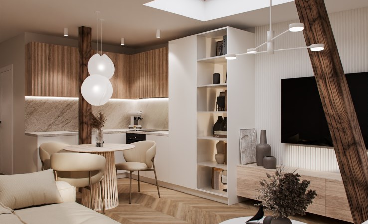 - pokój dzienny z aneksem kuchennym 17,60 m2,