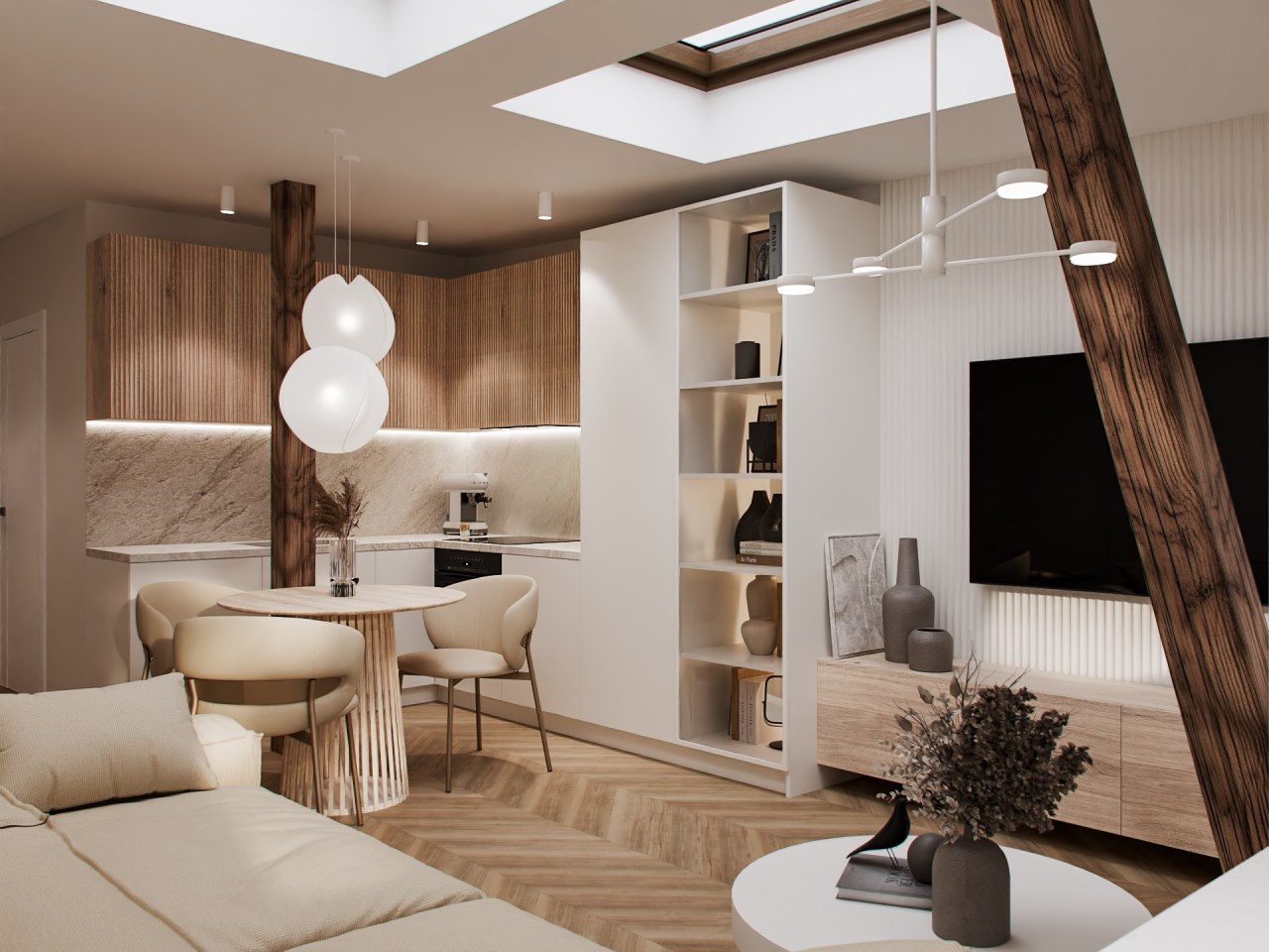 - pokój dzienny z aneksem kuchennym 20,00 m2,