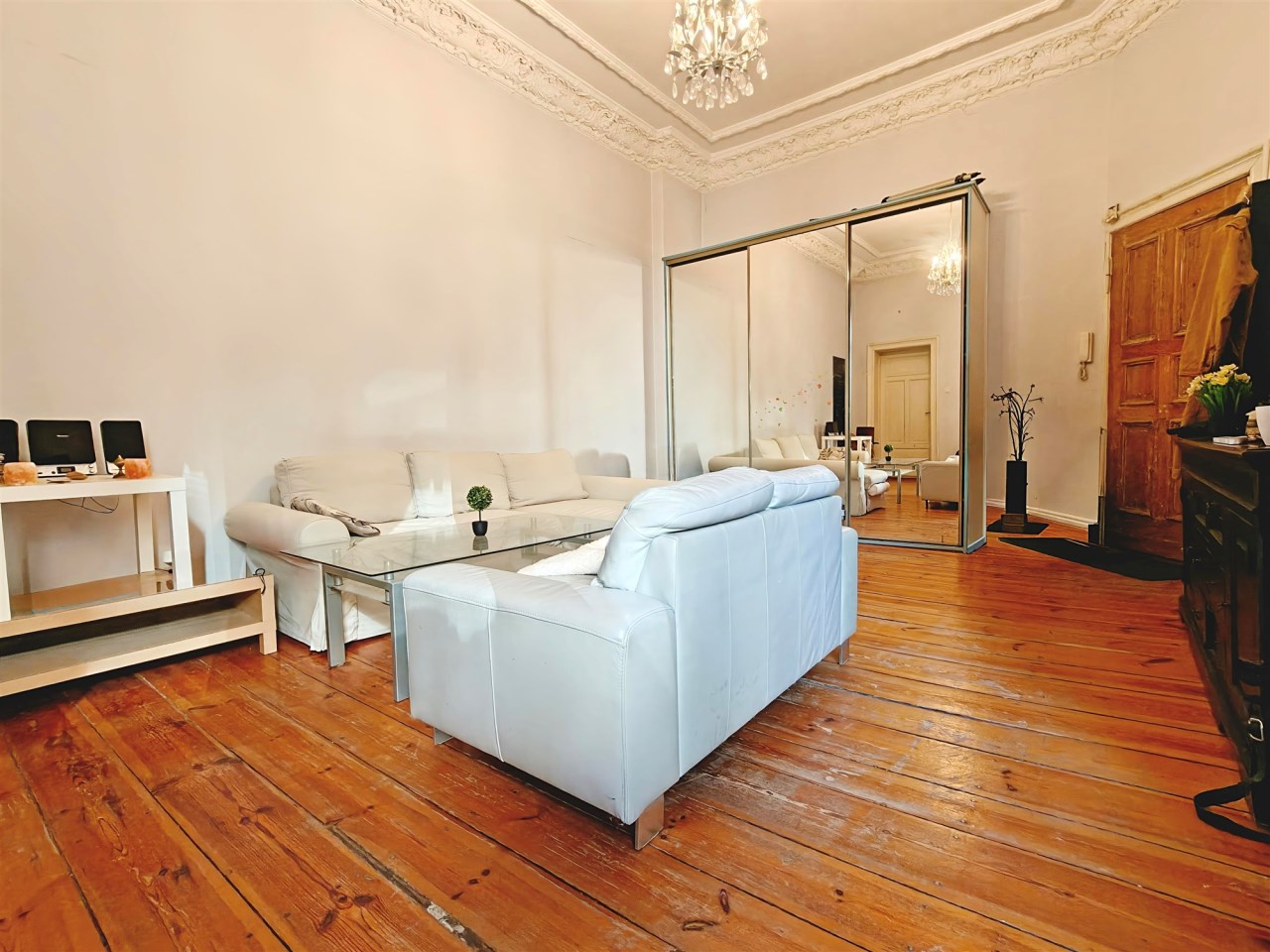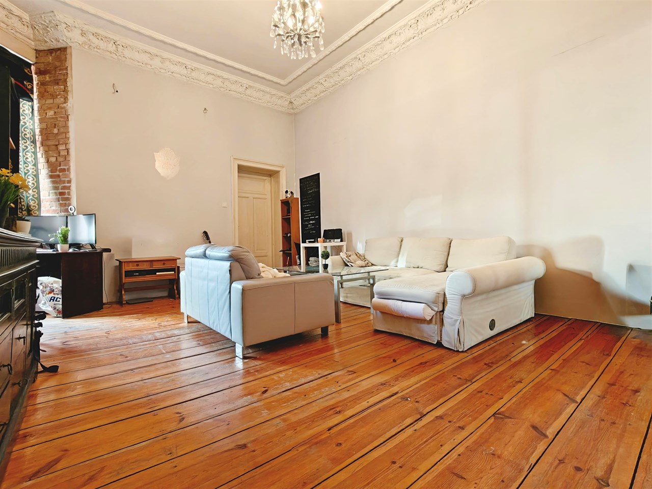 Wnętrze zachwyca, charakterystyczną rzeczą dla starych kamienic jest sztukateria, która tutaj jest zachowana i pięknie się prezentuje. Opłaty za czynsz w mieszkaniu obecnie wynoszą około 350zł miesięcznie. Mieszkanie samo w sobie jest ciepłe ze względu na jego środkowe położenie. Mieszkanie sprzedawane z pełnym wyposażeniem widocznym na zdjęciach, co jest świetną wiadomością dla inwestorów pod wynajem lub osób chcących szybko się wprowadzić.