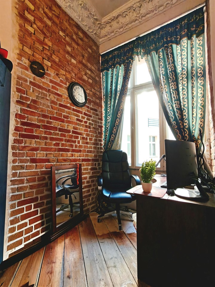 - pierwsze piętro w kamienicy z cegły