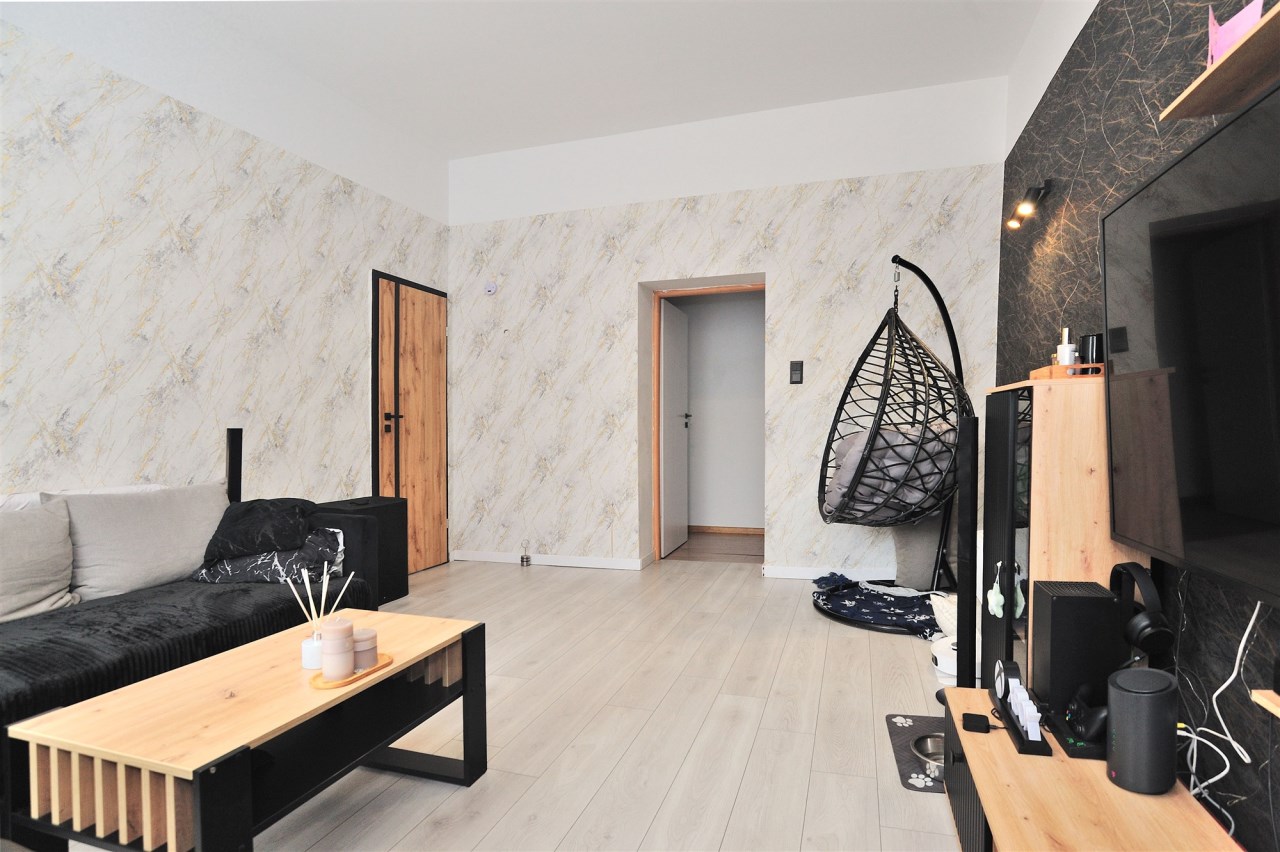 Na powierzchnię 61,6 m2 mieszkania składają się 4 pokoje, jeden z nich stanowi salon wypoczynkowy, pozostałe 3 sypialnie, widna kuchnia z nową zabudową meblową oraz łazienka z wanną. Dodatkowo piwnica o powierzchni 5,75m2