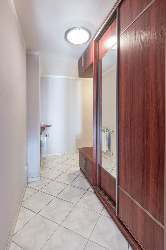 W pokojach wykładzina dywanowa, ściany tapetowane. W aneksie kuchennym, przedpokoju i części pokoju na podłodze terakota. Łazienka razem z wc w glazurze i terakocie, wanna. W przedpokoju duża zabudowa typu komandor.