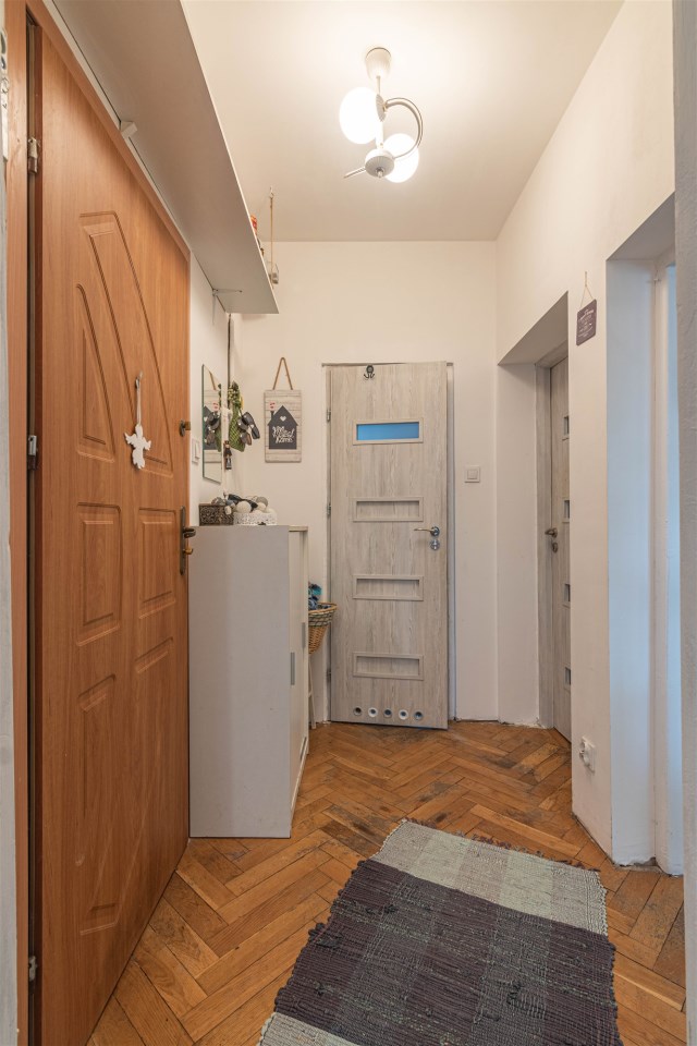 Mieszkanie znajduje się na 2 piętrze trzykondygnacyjnej kamienicy. W pokojach i korytarzu podłogi wyłożone są dębowym parkietem (do odświeżenia). Kuchnia i łazienka przygotowane do własnej aranżacji. Kuchnia o powierzchni 9 m2, bardzo widna z wyjściem na przestronny balkon. Duży pokój (19m2) i kuchnia usytuowane są od strony północno zachodniej, mniejszy pokój (16m2) i łazienka (ok.4,5m2) od południowego wschodu. Mieszkanie jest ciepłe i w większej części słoneczne, co przekłada się na zwroty za ogrzewanie. Wymienione okna PCV oraz instalacja elektryczna, kanalizacyjna i gazowa. W budynku nowe piony wodne i kanalizacyjne.