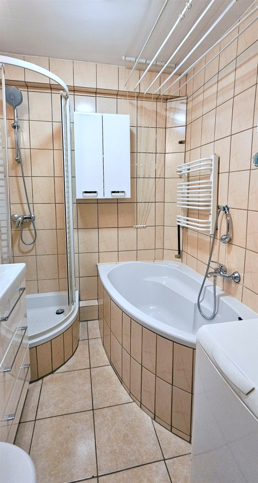 | Wyposażenie łazienki | kabina prysznicowa, lustro, pralka, umywalka, wanna, WC |