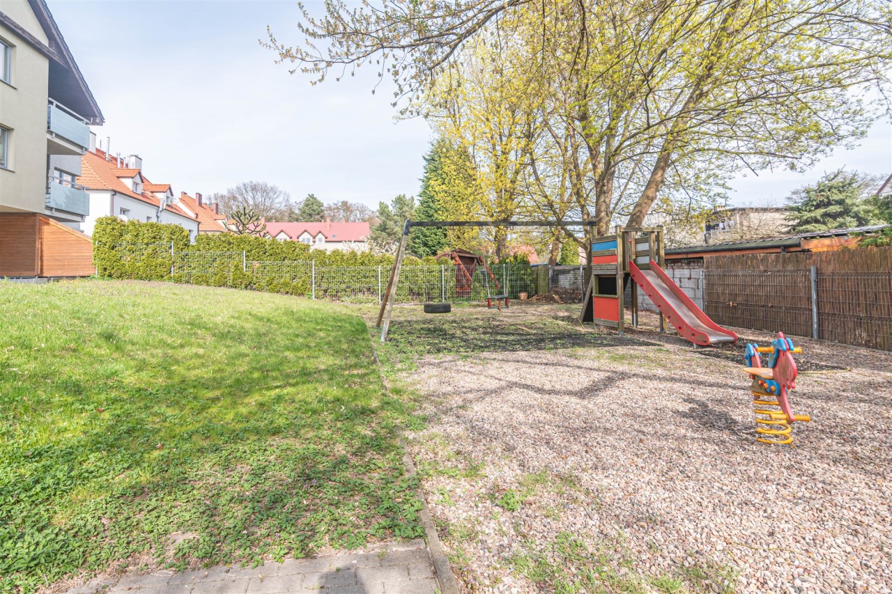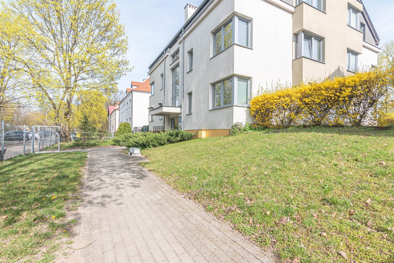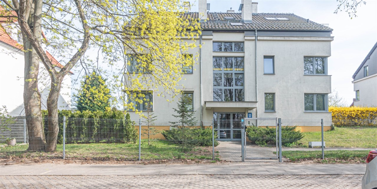 Do mieszkania przynależy ogród przydomowy o powierzchni około 213 m2 oraz stanowisko postojowe położone w kondygnacji podziemnej budynku.