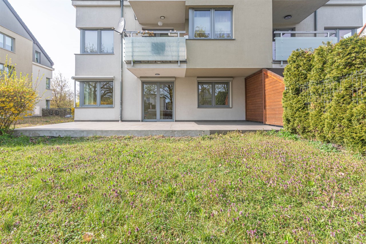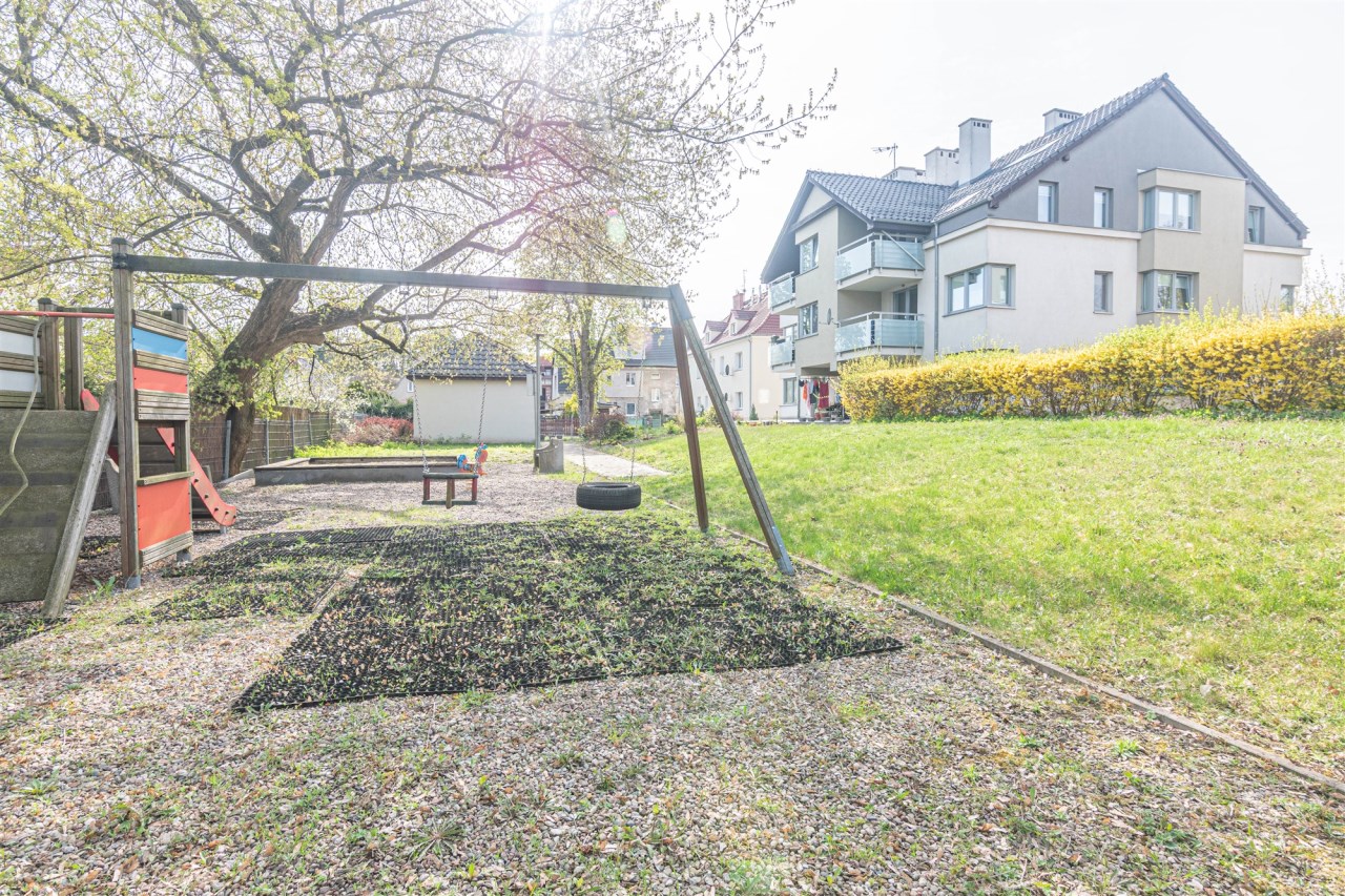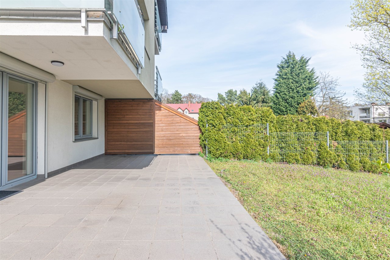 Do mieszkania przynależy ogród przydomowy o powierzchni około 213 m2 oraz stanowisko postojowe położone w kondygnacji podziemnej budynku.