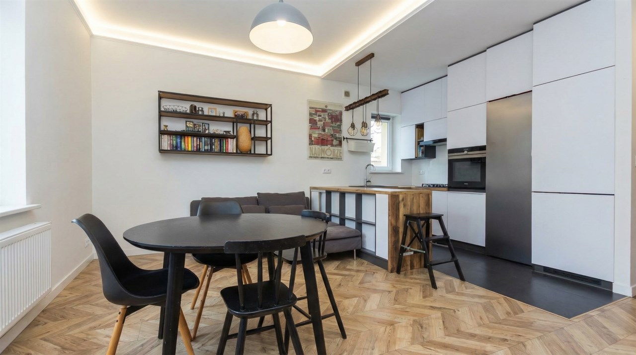 - spójny styl całego mieszkania- wszystkie elementy wnętrza pasują do siebie