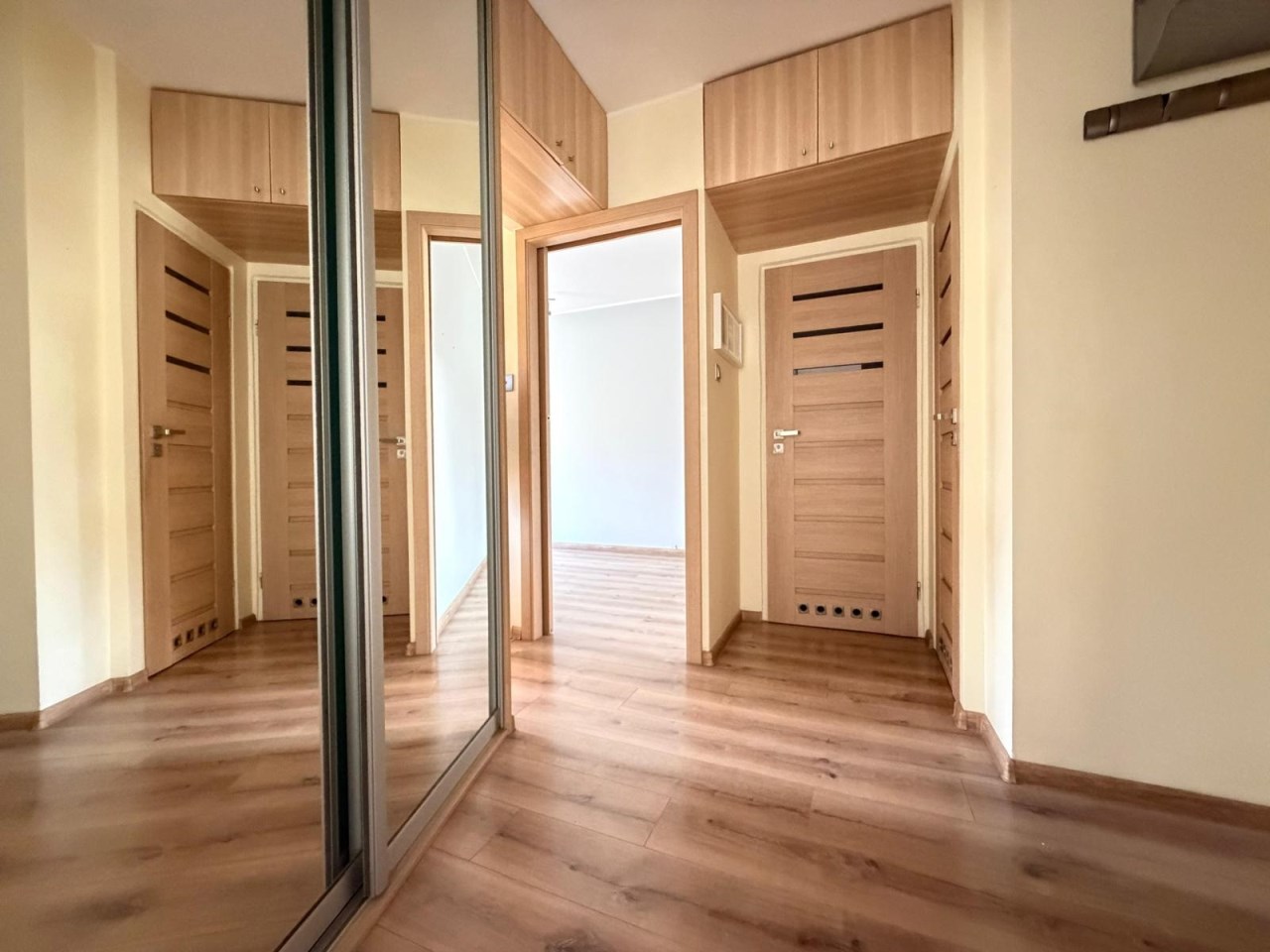 - Funkcjonalny rozkład: Przestronny salon (ok. 25 m²) z wyjściem na duży balkon (7 m²), oddzielna sypialnia (ok. 12 m²), widna kuchnia, łazienka, osobne WC oraz pojemny przedpokój