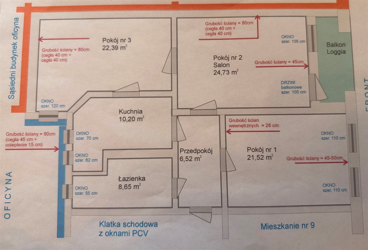 | Powierzchnia pokoi | 24,73 / 22,39 / 21,52 m2 |