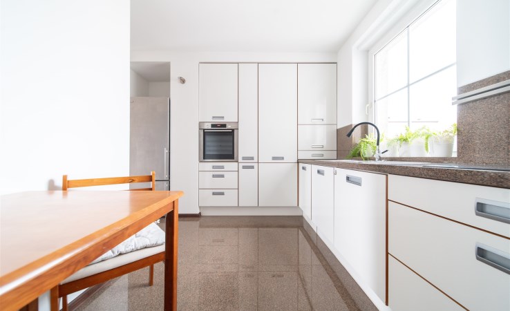 W mieszkaniu pozostają zabudowy stałe (szafy), meble kuchenne oraz drewniany stół z 6 krzesłami.