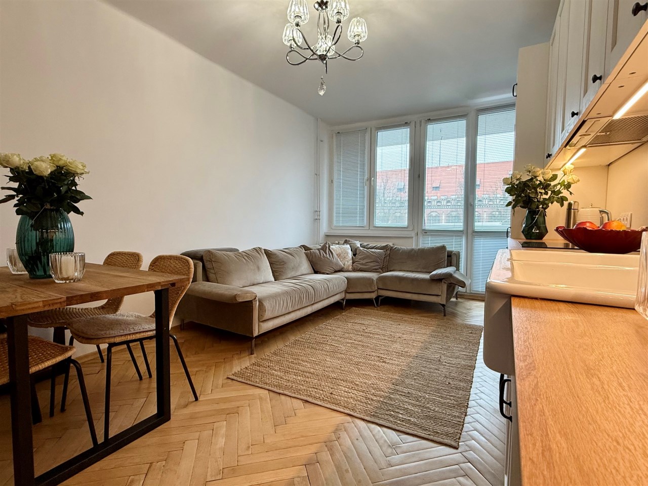 Mieszkanie składa się z salonu z aneksem kuchennym i wyjściem na balkon. Z salonu prowadzi wejście do jednej sypialni, a dodatkowo do dyspozycji są jeszcze dwa niezależne pokoje. W lokalu znajduje się łazienka z WC i kabiną prysznicową oraz wnęka na garderobę.