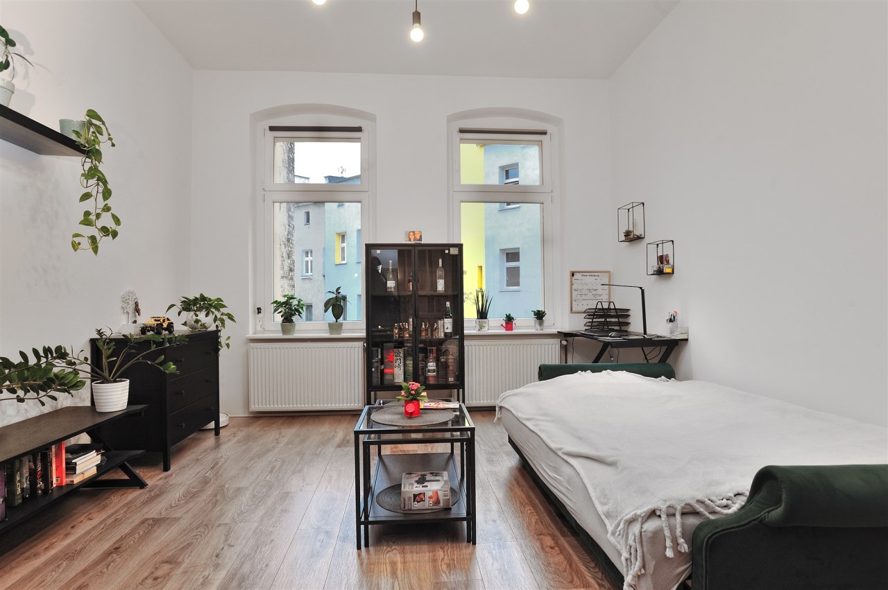 To przestronne mieszkanie o powierzchni 95,58 m² znajduje się w zabytkowej kamienicy z około 1920 roku.