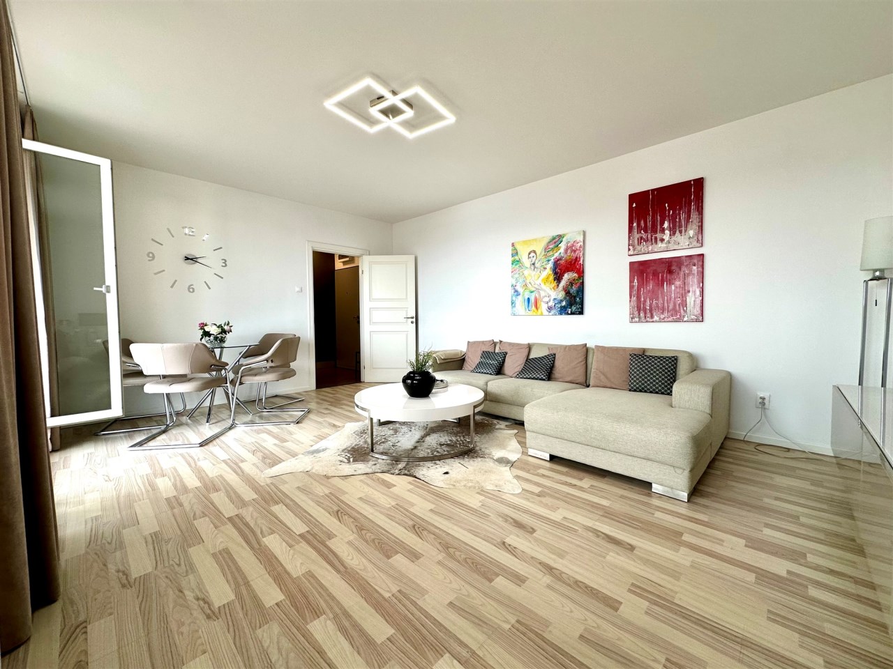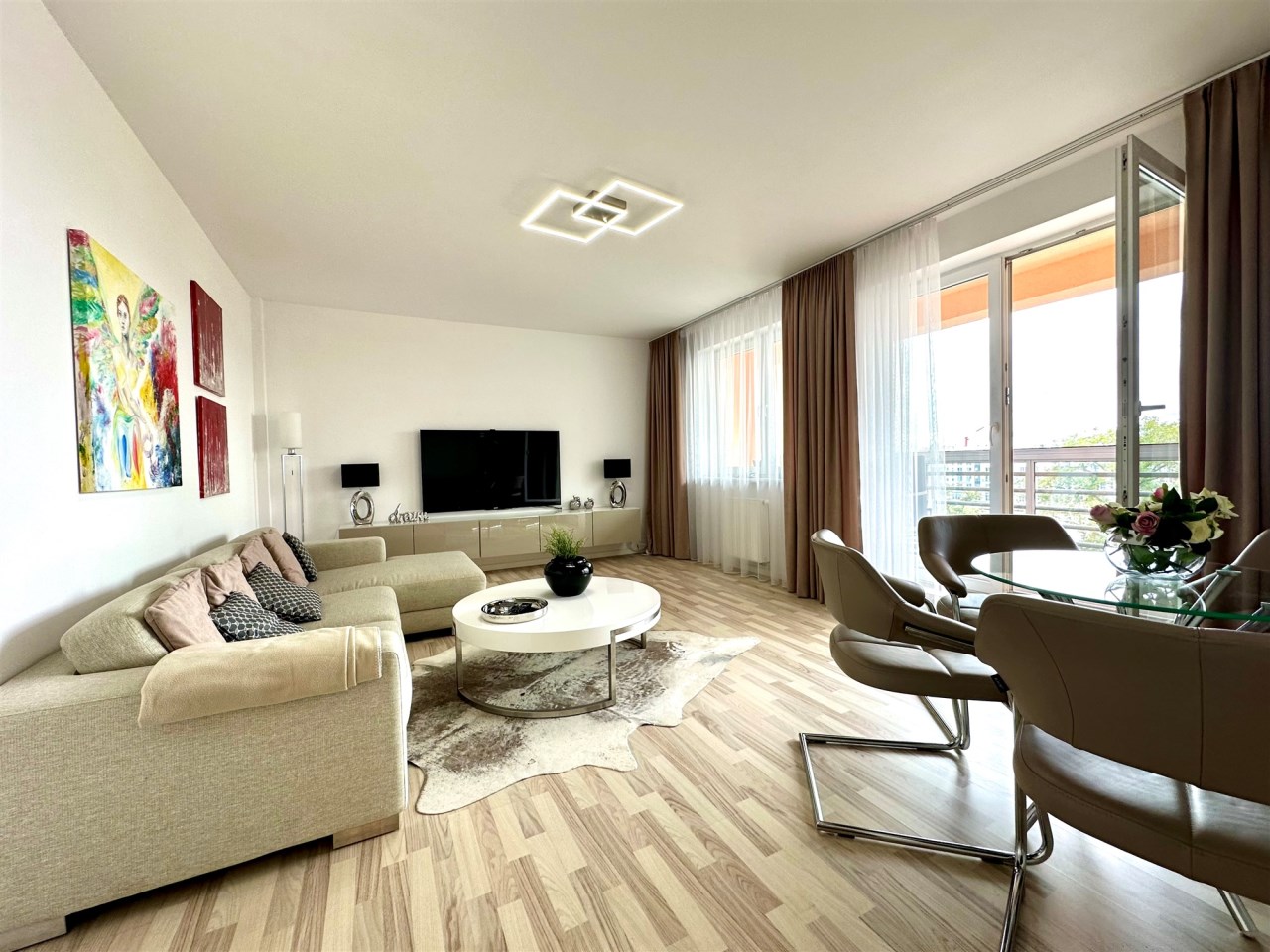 - salon z wyjściem na balkon,