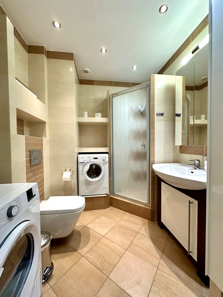 - łazienki z prysznicem, toaletą, pralką i suszarką,