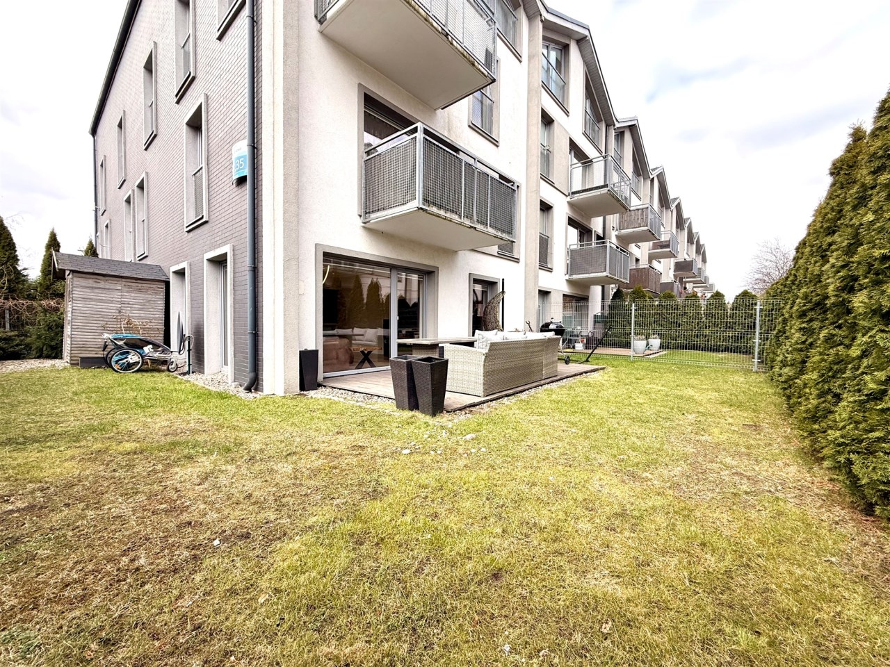 Do mieszkania przynależy duży ogród, idealny do relaksu, spotkań z bliskimi lub stworzenia własnej zielonej oazy.