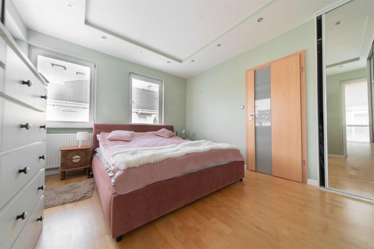 Na sprzedaż dwupoziomowe mieszkanie z ogródkiem w czterorodzinnym szeregowcu na zamkniętym strzeżonym osiedlu Bursztynowe w Warzymicach.