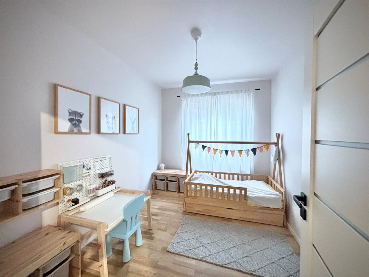Pokój dziecięcy z oknem od strony zachodniej i widokiem na ogródek.