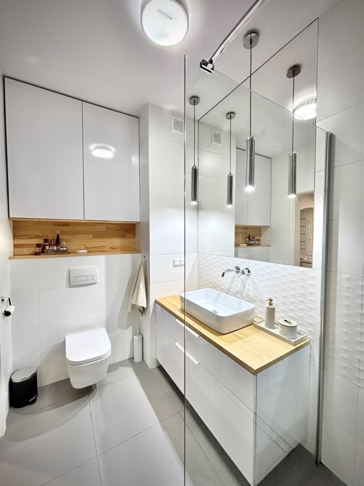 Mieszkanie w pełni zaprojektowane przez architekta wnętrz, z naciskiem na funkcjonalność i ergonomię. Wnętrze mieszkania jest niezwykle jasne, a taras zlokalizowany od zachodu jest perfekcyjnym miejscem na spędzanie letnich wieczorów na świeżym powietrzu.
