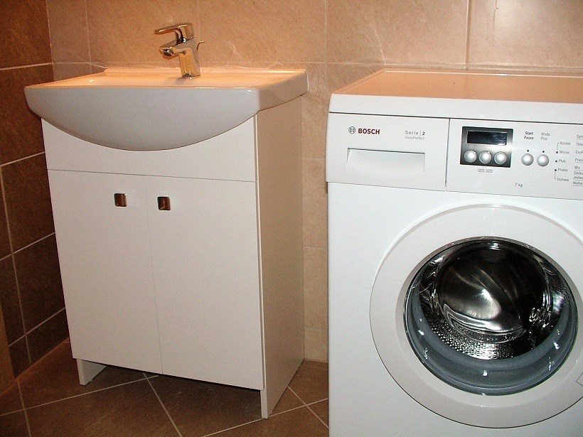 | Wyposażenie łazienki | kabina natryskowa, lustro, pralka, umywalka, WC |