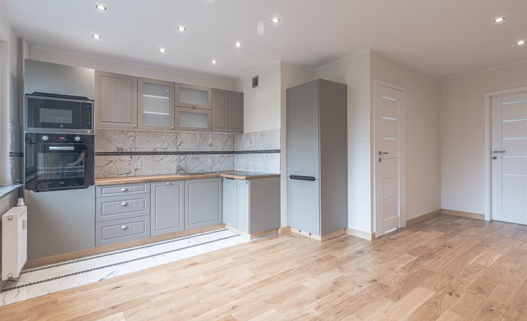 | Wyposażenie kuchni | lodówko/zamrażarka, meble kuchenne na wymiar, okap, piekarnik elektryczny, płyta indukcyjna |