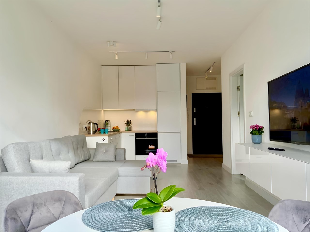 Mieszkanie o powierzchni 41 m² zostało wykończone z wysokiej jakości materiałów i jest w pełni umeblowane. W skład lokalu wchodzą: