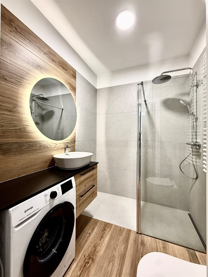 | Wyposażenie łazienki | kabina prysznicowa, lustro, pralka, WC |