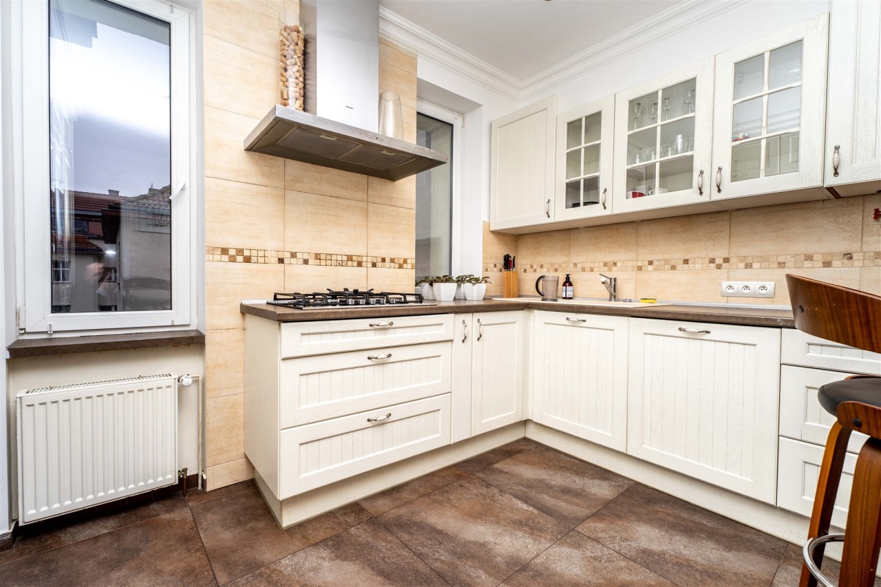 Mieszkanie wykończone w wysokim standardzie z zachowaniem klimatu oraz stylu właściwego dla wnętrz w kamienicach.