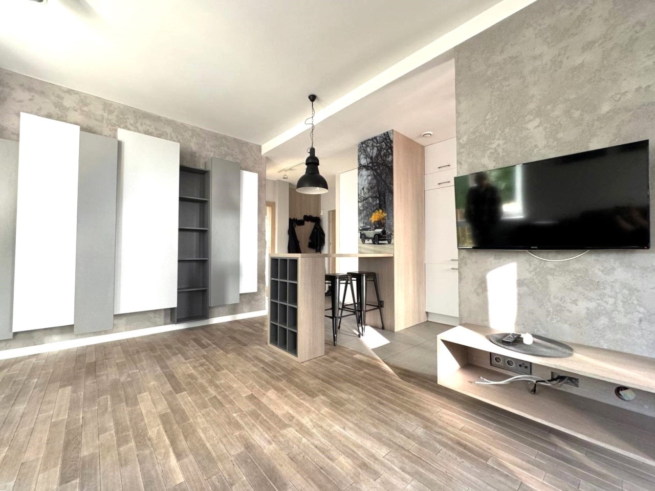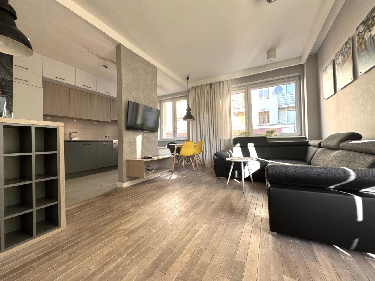 Na powierzchnię 53m2 składa się przestronny salon z aneksem kuchennym w pełni wyposażonym, sypialnię, łazienkę razem z WC oraz korytarz z duża szafą.