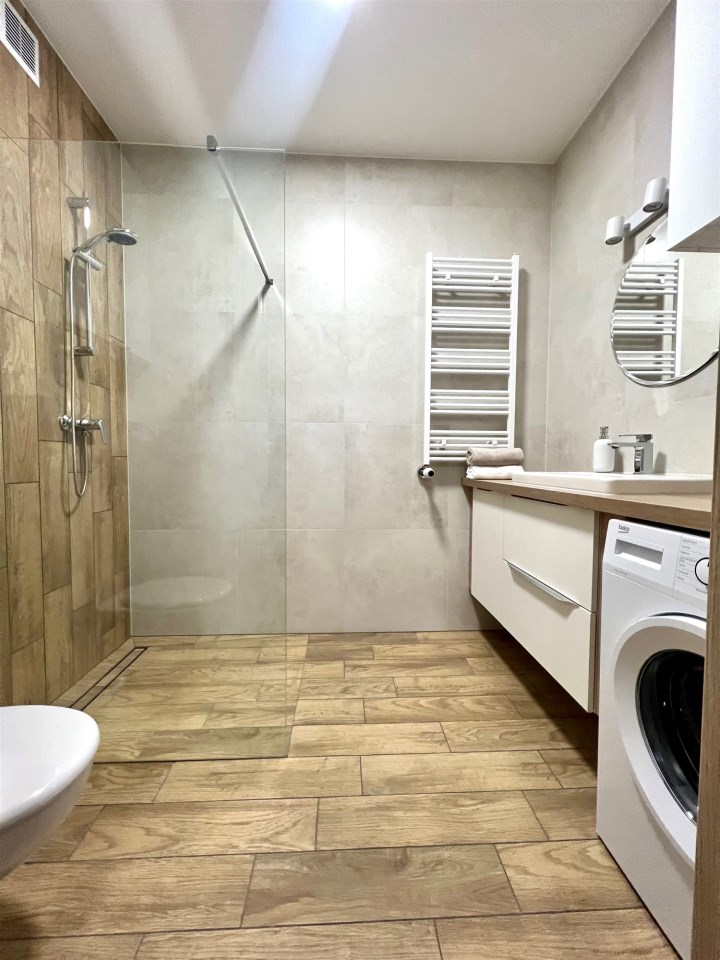 | Wyposażenie łazienki | natrysk, ogrzewanie podłogowe, pralka, umywalka, WC |