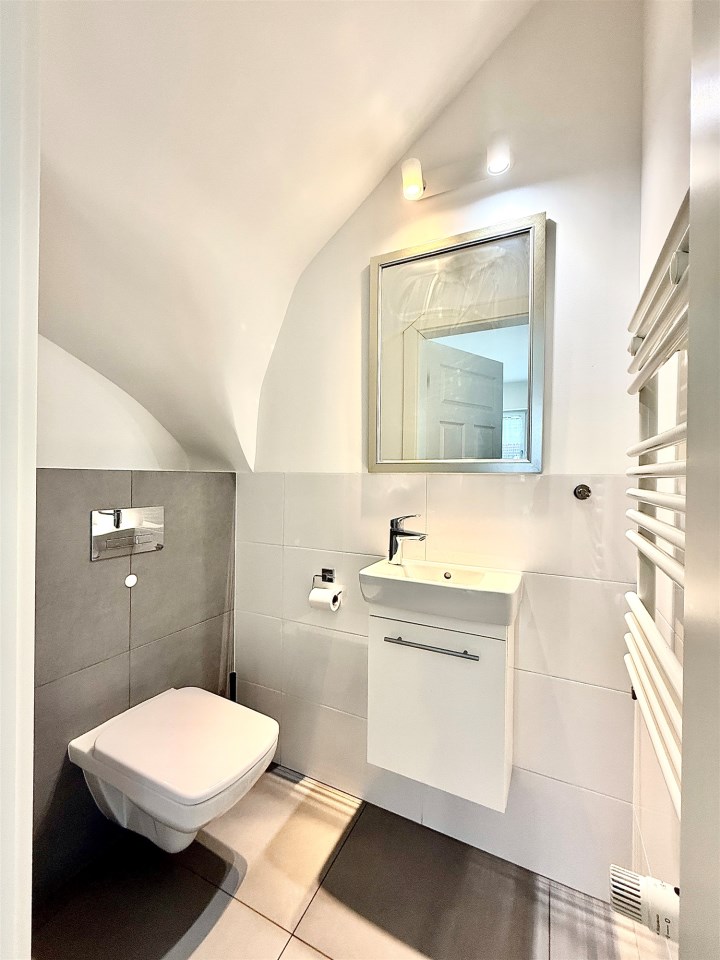 Dwupokojowa nieruchomość mieści się na dwóch kondygnacjach i składa z:
