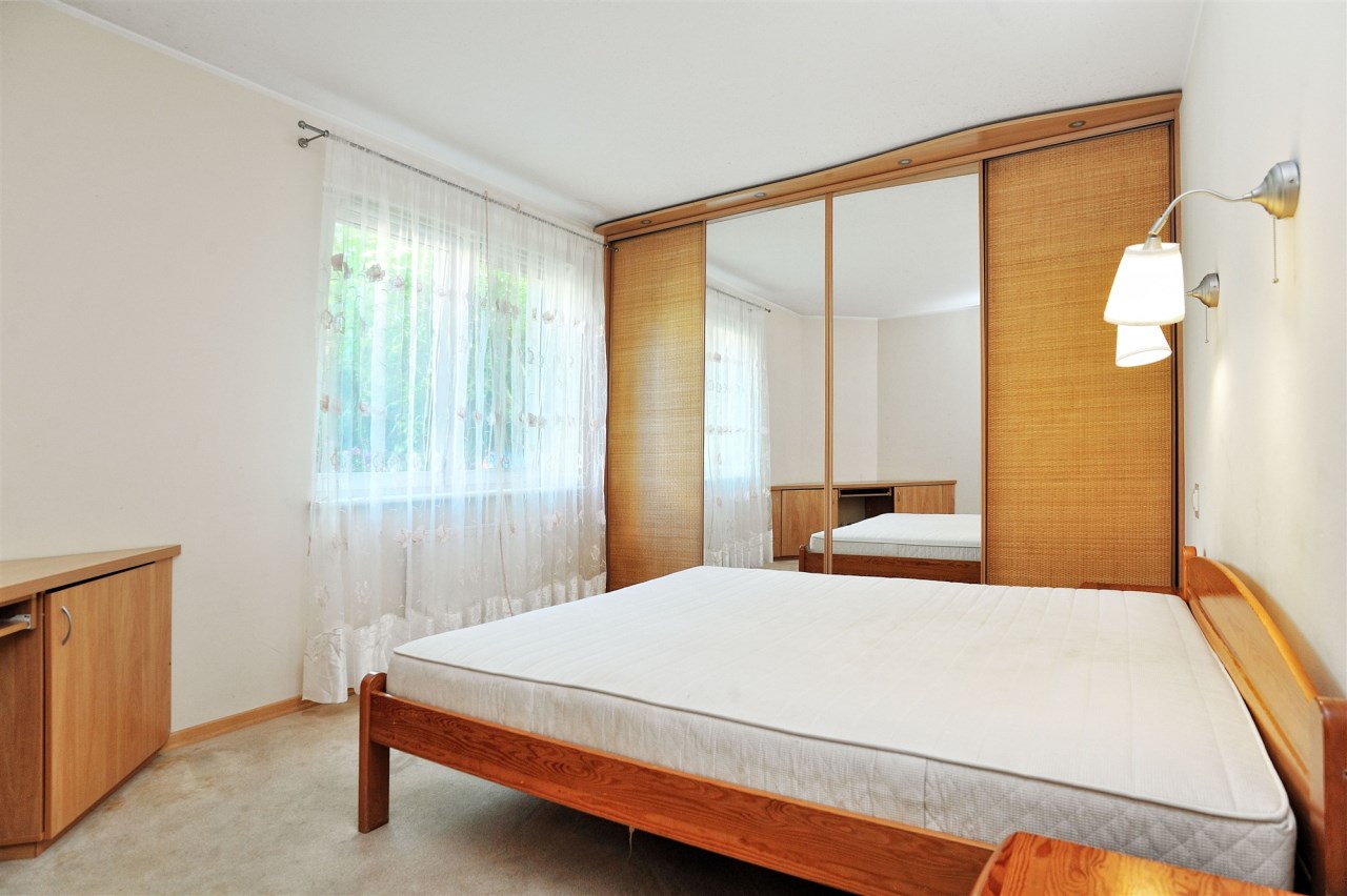 - Sypialnia (14m2) od strony wschodniej z dwoma oknami i widokiem na ogród przynależny do mieszkania. Pokój idealny dla 2 dzieci. Na podłodze wykładzina podłogowa. Łóżko 200x80. Szafki. Dużo biurko dla 2 osób.