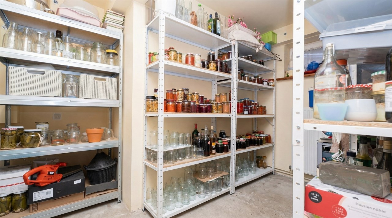 Parter to duży salon z otwartą kuchnia, podzielony na dwie strefy. Strefę kuchenno -jadalnianą i wypoczynkową. Kuchnia z oknem w jasnej zabudowie , w jadalni duży stół z krzesłami. Strefa wypoczynkowa z panoramicznymi przesuwnymi oknami skąd jest wyjście na duży taras i słoneczny ogród. W salonie właściciele , zamiast kominka wstawili piec kaflowy. Na tym poziomie znajduje się pokój (gabinet ) o powierzchni ponad 12 m kw oraz toaleta. Tu też znajdują się schody prowadzące na piętro pierwsze oraz na poziom -1. Piętro pierwsze to trzy sypialnie, garderoba oraz łazienka z oknem i z dużym prysznicem Dzięki usytuowaniu okien, pokoje są dobrze doświetlone a zarazem bardzo ustawne. W dwóch sypialniach balkony. Nad piętrem jest poddasze służące do przechowywania. Poziom -1 to duży garaż o powierzchni ponad 25 m oraz dwa dodatkowe pomieszczenia spełniające funkcje pralni i piwnicy.