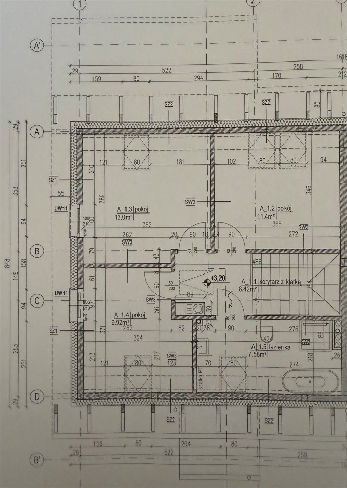 | Powierzchnia pokoi | 32,5 / 13 / 11,4 / 9,92 m2 |