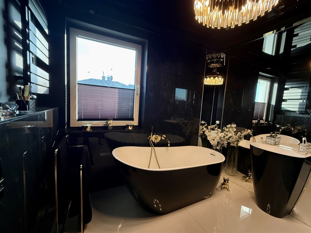 Dodatkowym atutem jest ogrzewanie podłogowe, zapewniające komfort ciepła w chłodniejsze dni.