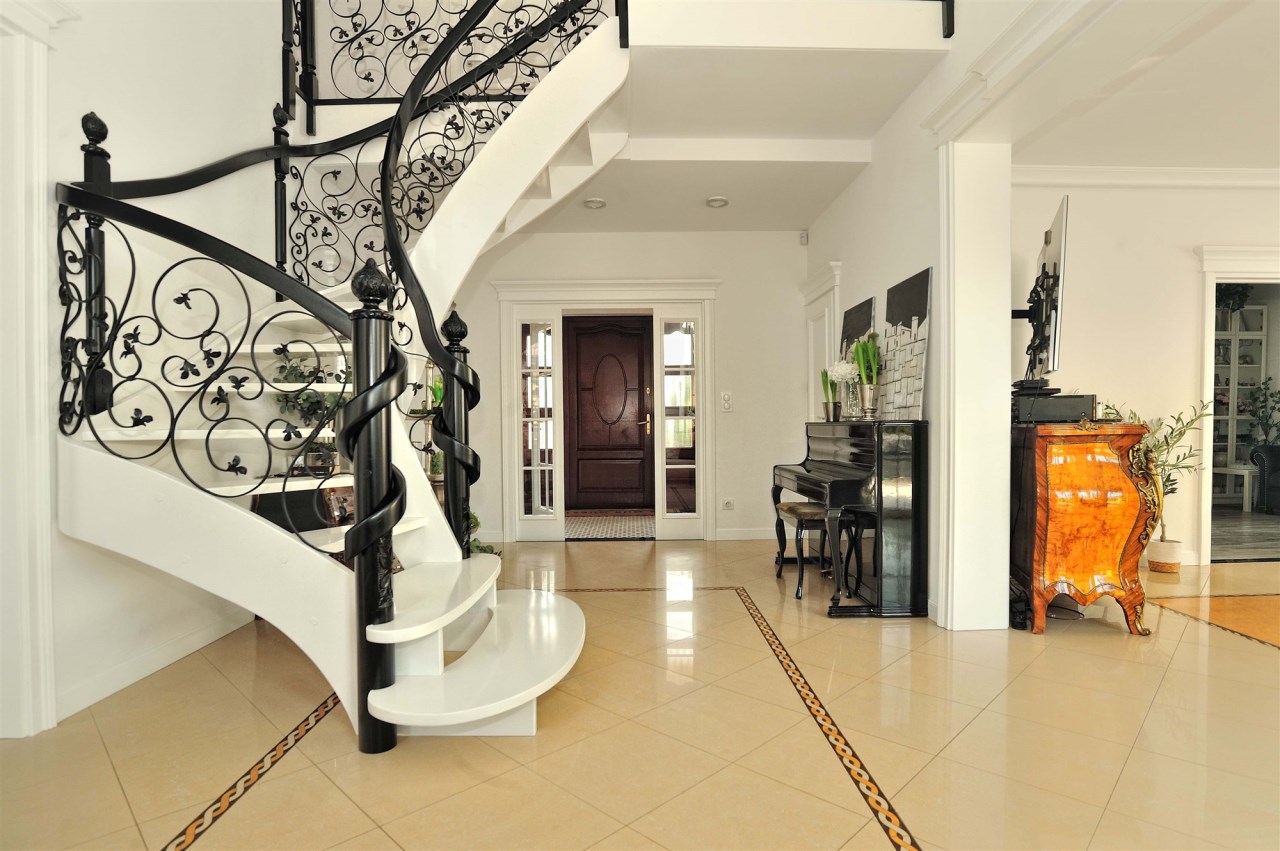 - reprezentacyjny hol – wysokość 7 metrów, marmurowy kominek i eleganckie, kręcone schody