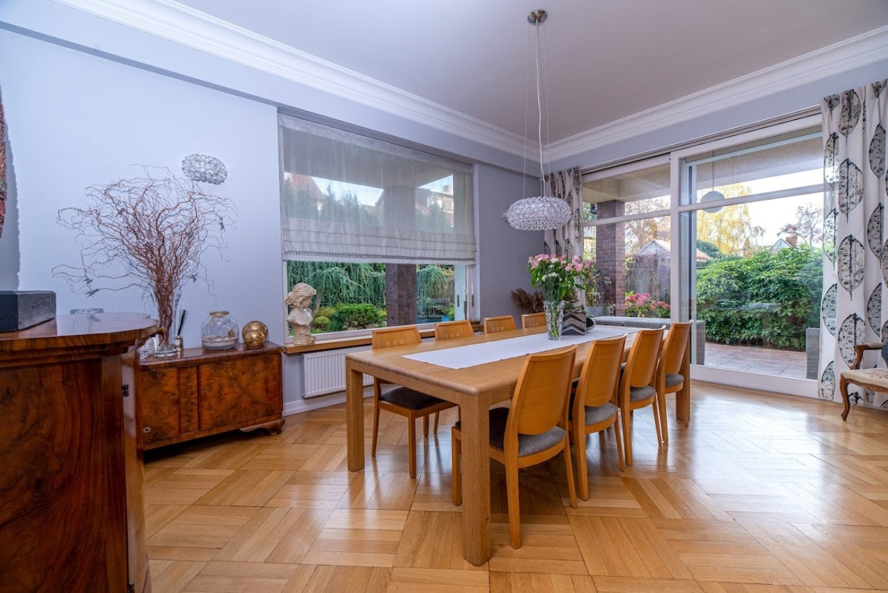 - Stylowa jadalnia z wyjściem na taras i ogród,
