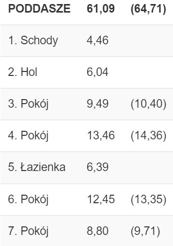 | Powierzchnia pokoi | 23,09; 10,40; 14,36; 13,35; 9,71 m2 |