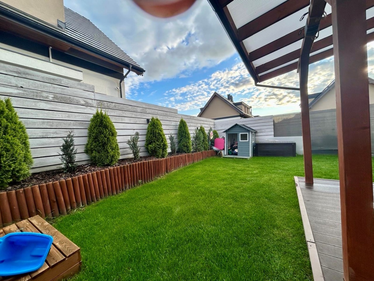 Ogród ok. 90 m² – zagospodarowany, z dużym tarasem i zadaszeniem