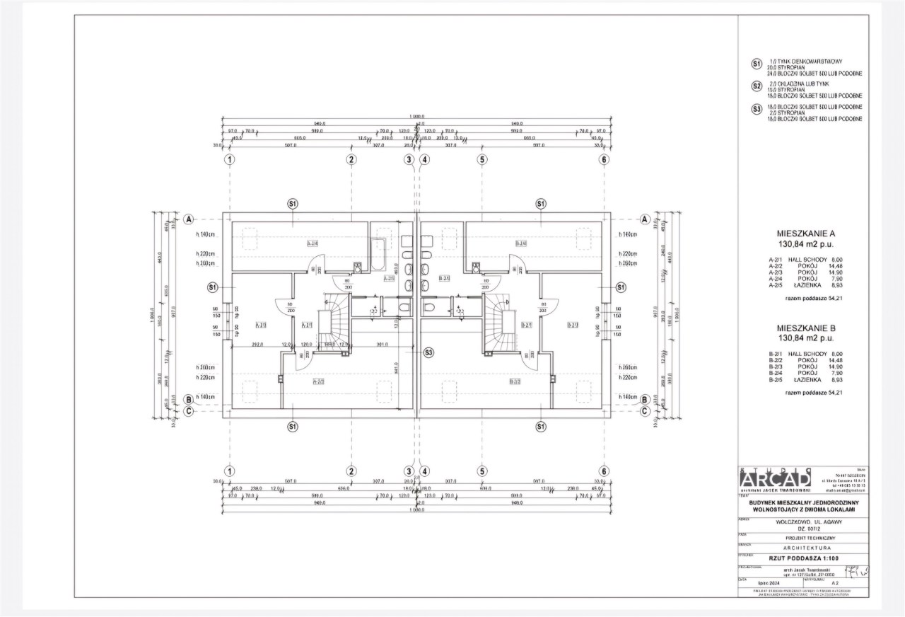 Dom jednorodzinny dwulokalowy w zabudowie bliźniaczej, na na działce 425 m2, o powierzchni użytkowej 130m2 powierzchni użytkowej. W projekcie podwójna ściana z dylatacją między sąsiadami co jest wymagane w zabudowie bliźniaczej a czego nikt z deweloperów nie stosuje w przypadku budynków dwulokalowych. Dostępne media: prąd, woda z wodociągu miejskiego, pompa ciepła, szambo. Budynki w stanie deweloperskim z elewacją i mediami doprowadzonymi do budynku. Budynki w tracie wykańczania, do wydania w I kwartale 2026 roku